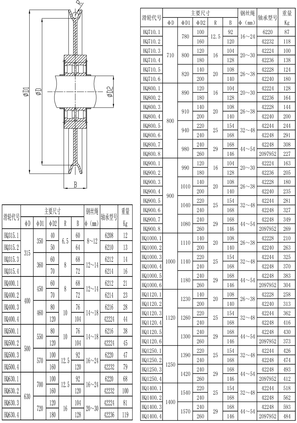 二、繩槽表面光滑耐磨,且可以熱處理,以提高其硬度,從而延長滑輪使用壽命1-2倍。