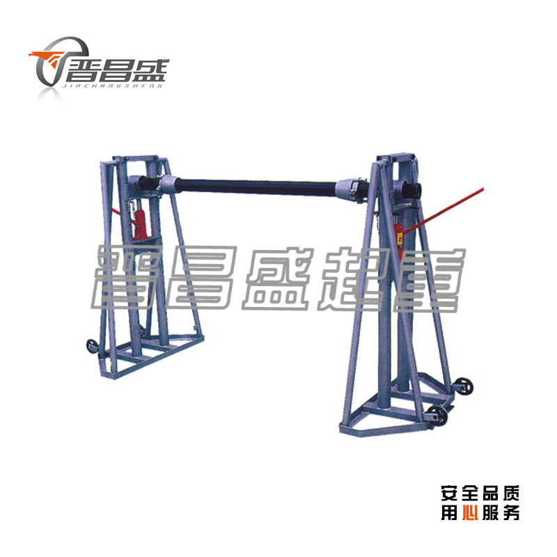 適用于電纜線盤(pán)的支撐。 液壓頂升、底腳裝有小輪,便于移動(dòng)。